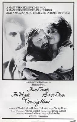 This is an original, insert theatrical movie poster from 1978 for Coming Home starring Jon Voight, Jane Fonda, Bruce Dern and Penelope Milford. Hal Ashby directed the drama.